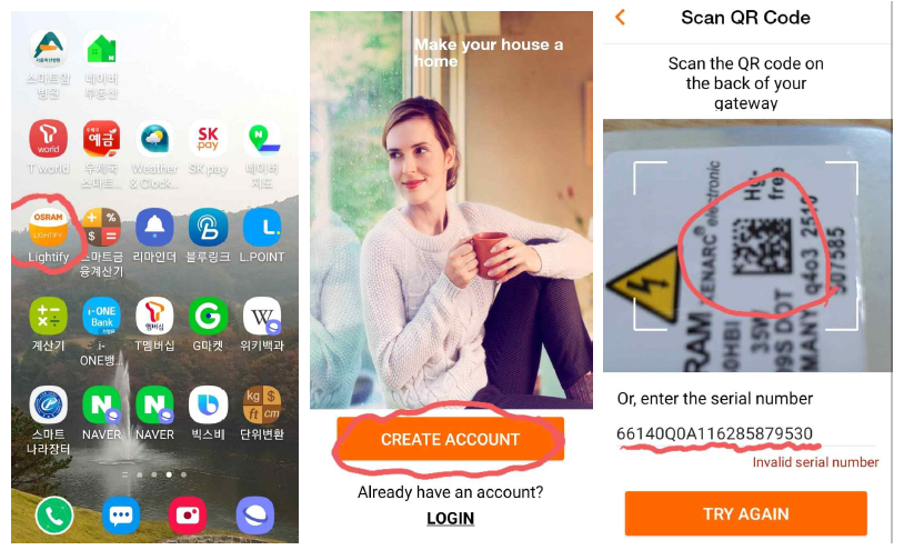 2) Lightify앱을 열어서 QR코드를 스캔합니다.
